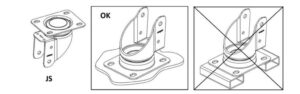 Mocowanie typu JS to obrotowy widelec z głęboko tłoczonej stali ocynkowanej oraz z całkowicie uszczelnionym łożyskiem kulkowym. Widelce posiadają kalamitkę w głowicy skrętnej umożliwiającą konserwację, która znacznie wpływa na wydłużenie żywotności zestawu. Zestaw JSFL jest jednym z najlepszych dostępnych na rynku zestawów do wysokich temperatur. Zestawy JSFN są zestawami bezobsługowymi. W celu zapewnienia długiej żywotności głowicę obrotową widelca należy systematycznie smarować.
